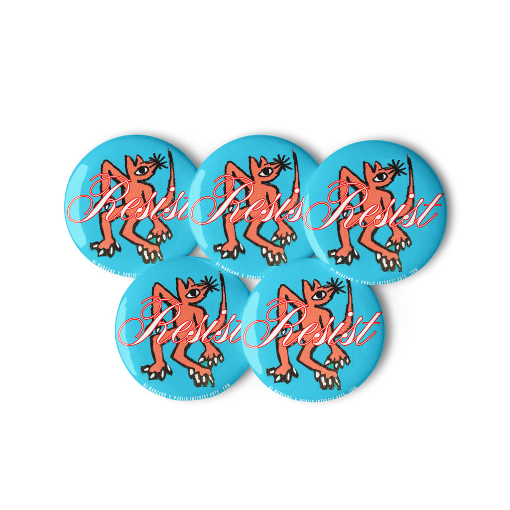Set of 5 pins, each 2.25" in diameter. Art by Al Marcano.