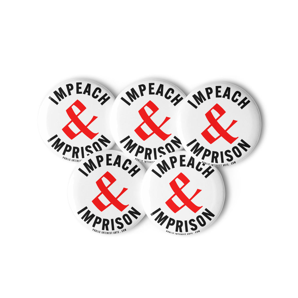 Set of 5 pins, each 2.25" in diameter. Art by Public Interest Arts.