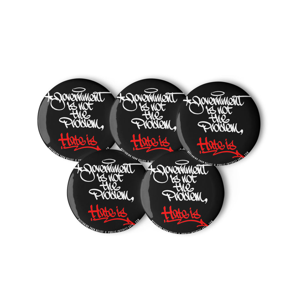 "Government Is Not The Problem, Hate Is" Set of Pins